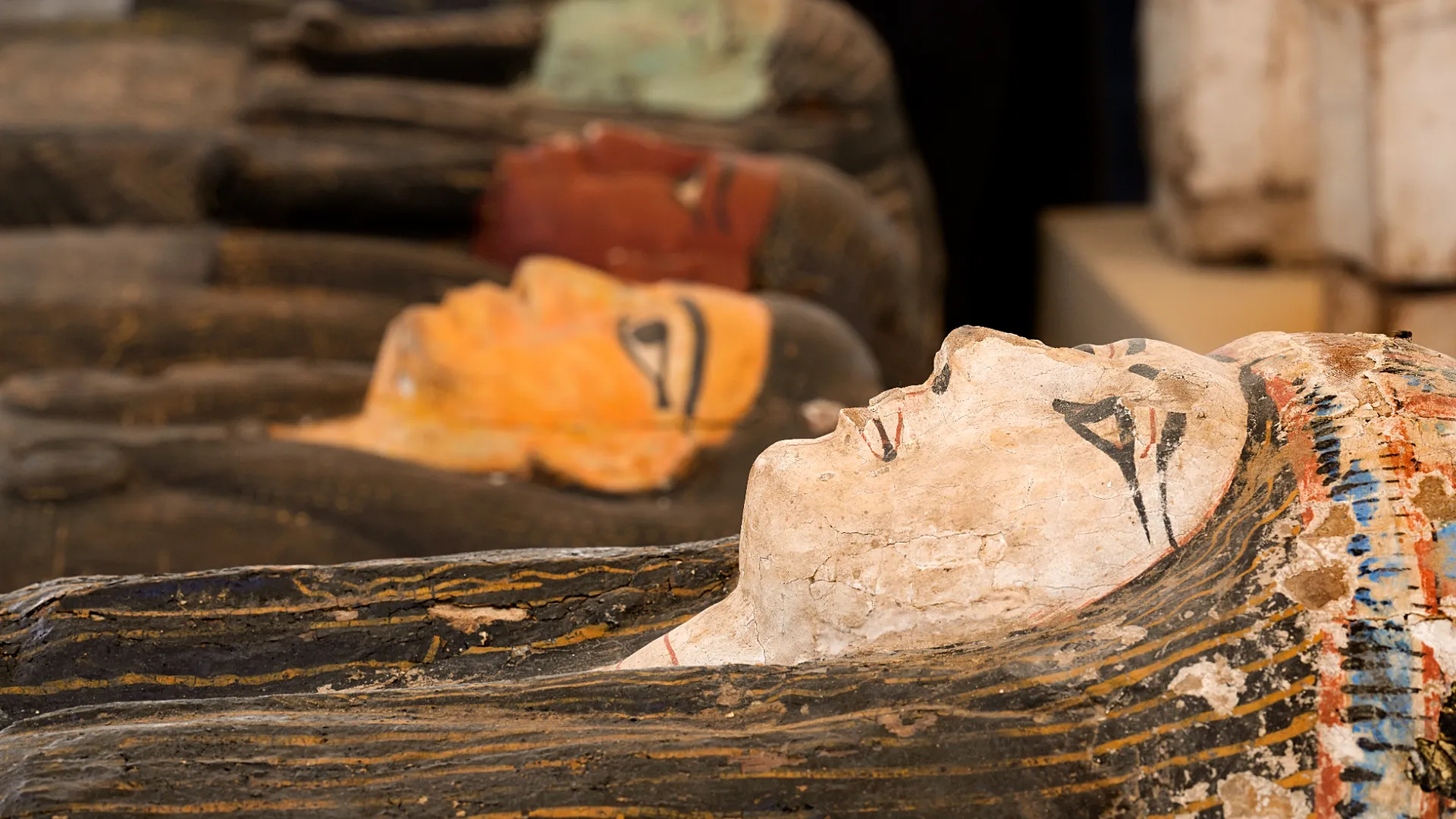 Le responsabili della missione, Maite Mascort e Esther Pons Mellado, hanno documentato diverse mummie con bende decorate con motivi geometrici e colori ancora vivaci, oltre a sarcofagi in legno policromo e un piccolo lotto di oggetti metallici: tre sottili lamine d’oro e un pezzo di rame.