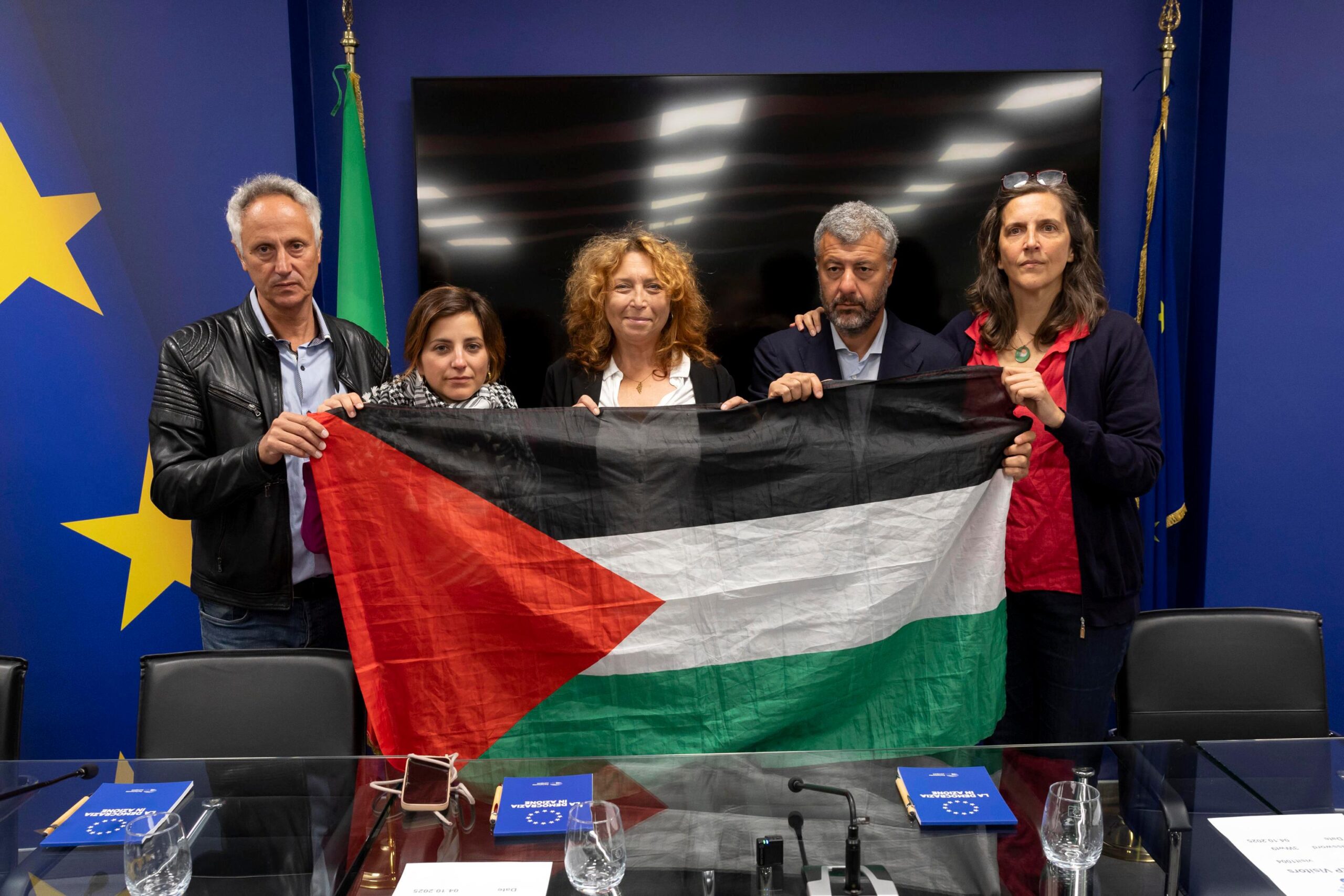 Сon il nostro team legale abbiamo consegnato un esposto alla procura di Roma per il sequestro subito, perché ci sono basi solide per procedere. Abbiamo depositato anche un secondo esposto per l’attacco di circa una settimana fa in acque internazionali: un attacco militare su barche civili che ha messo a rischio le nostre vite. Per noi il diritto internazionale deve valere sempre”. Lo ha detto Maria Elena Delia, portavoce del Global Movement to Gaza, alla conferenza stampa con i parlamentari della Flotilla rilasciati.